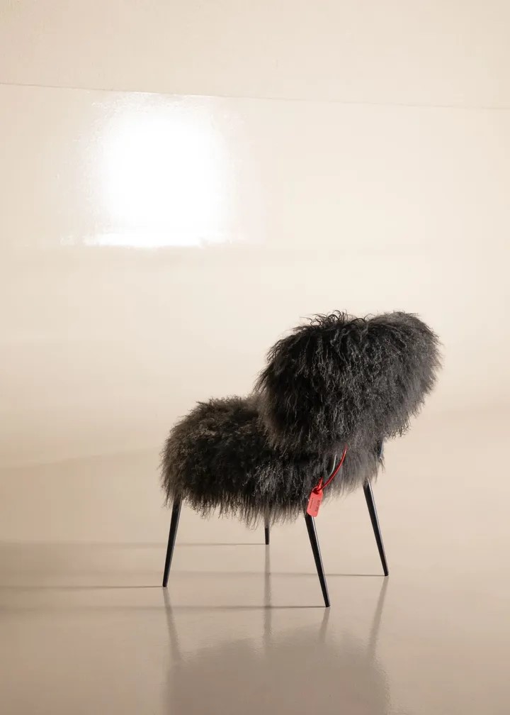 The depth of black dresses the iconic Baxter armchair designed by Paola Navone